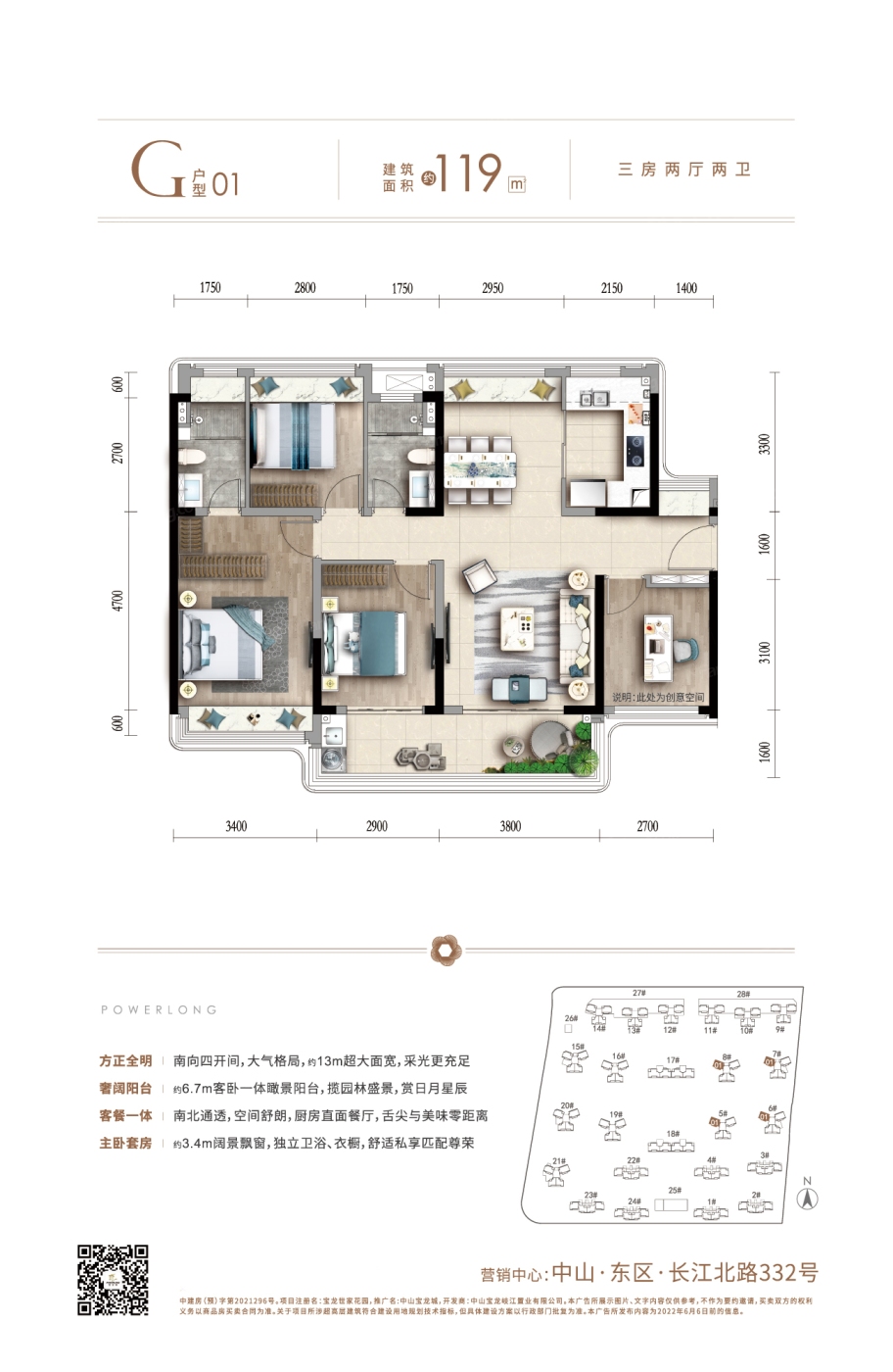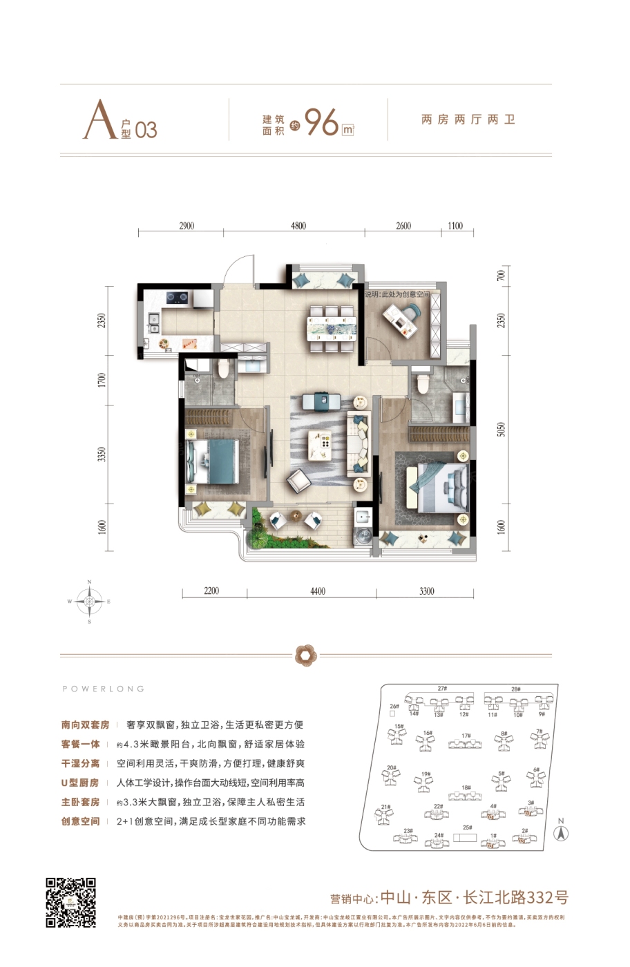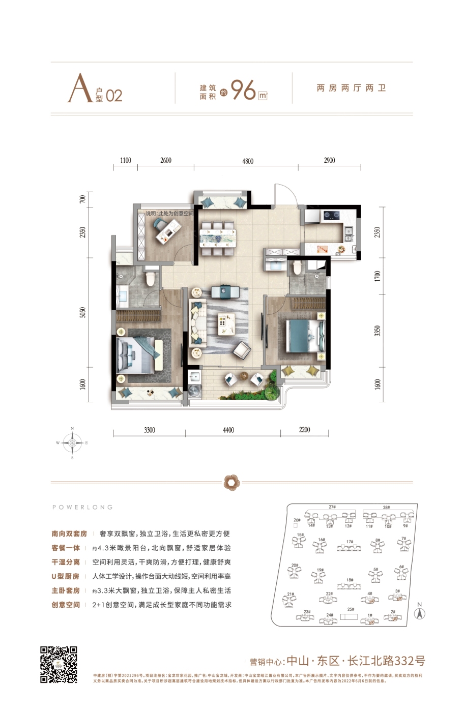 中山宝龙城 平层户型·建面/96㎡
