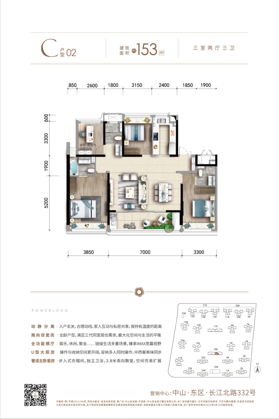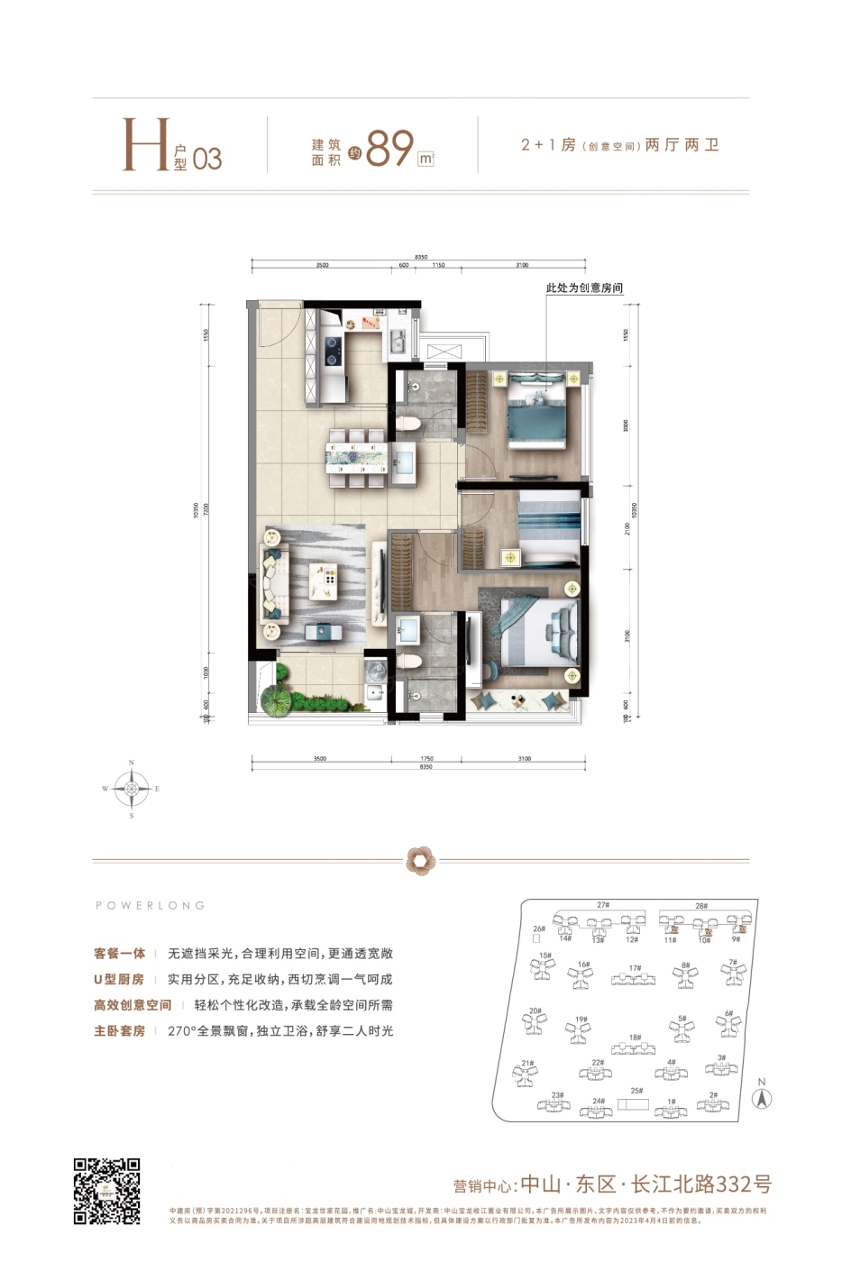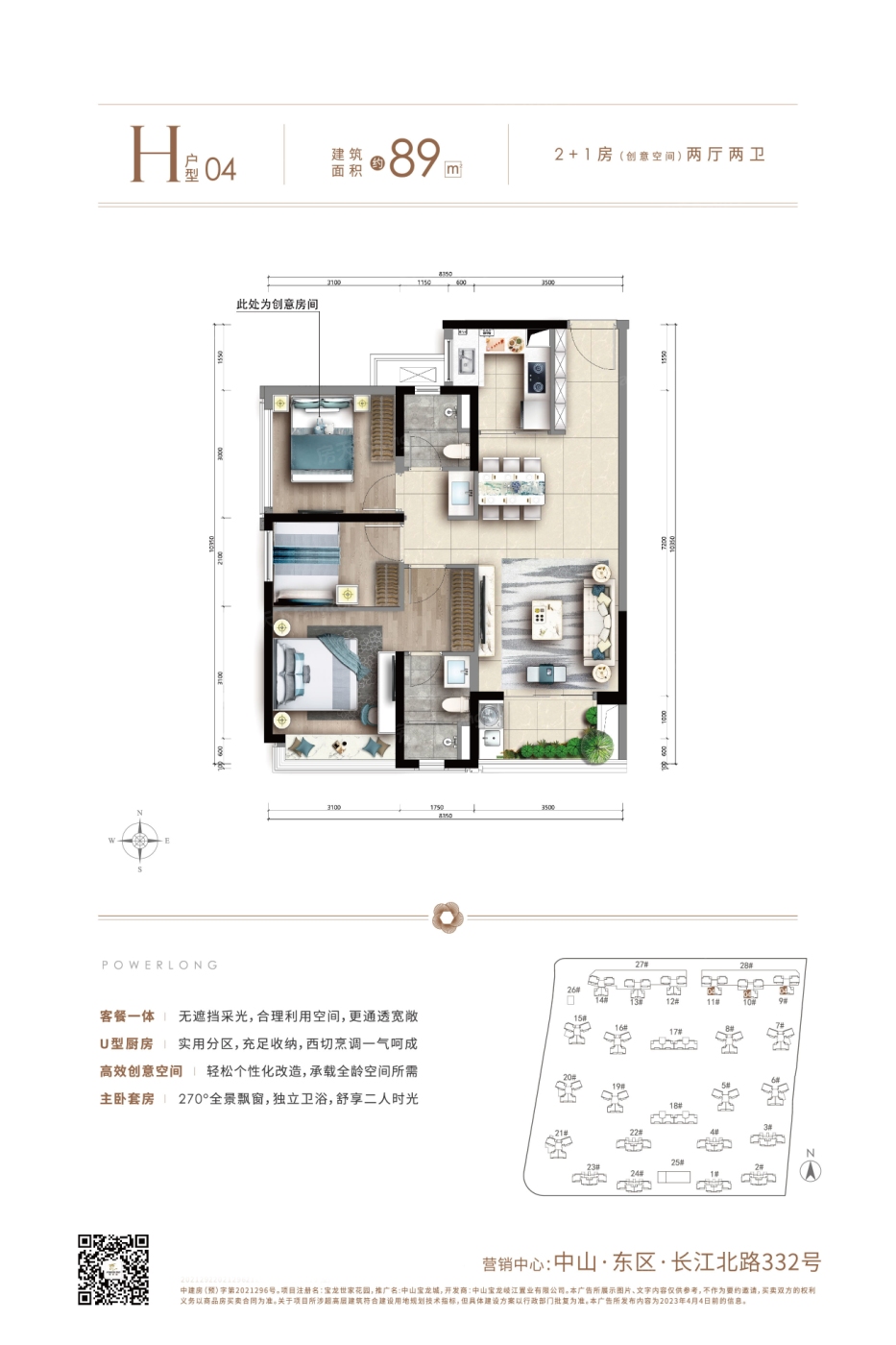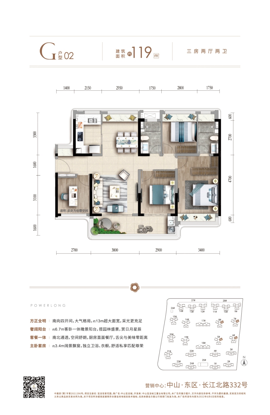 中山宝龙城 平层户型·建面/96㎡