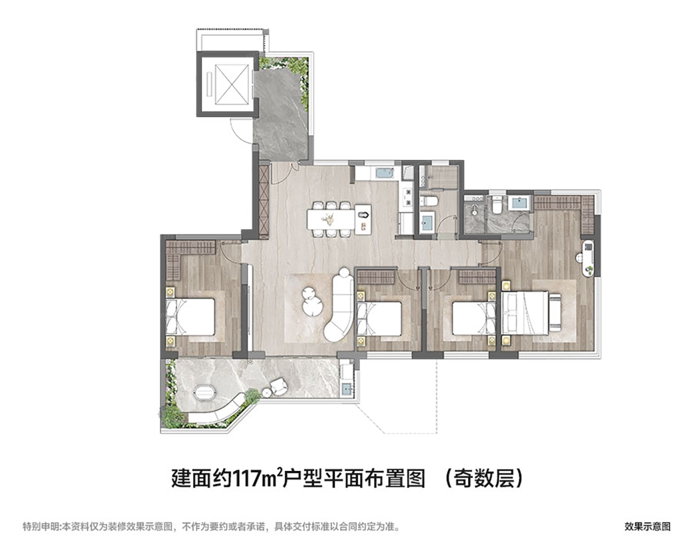 建华龙湖·香山颂 平层户型·建面/117㎡