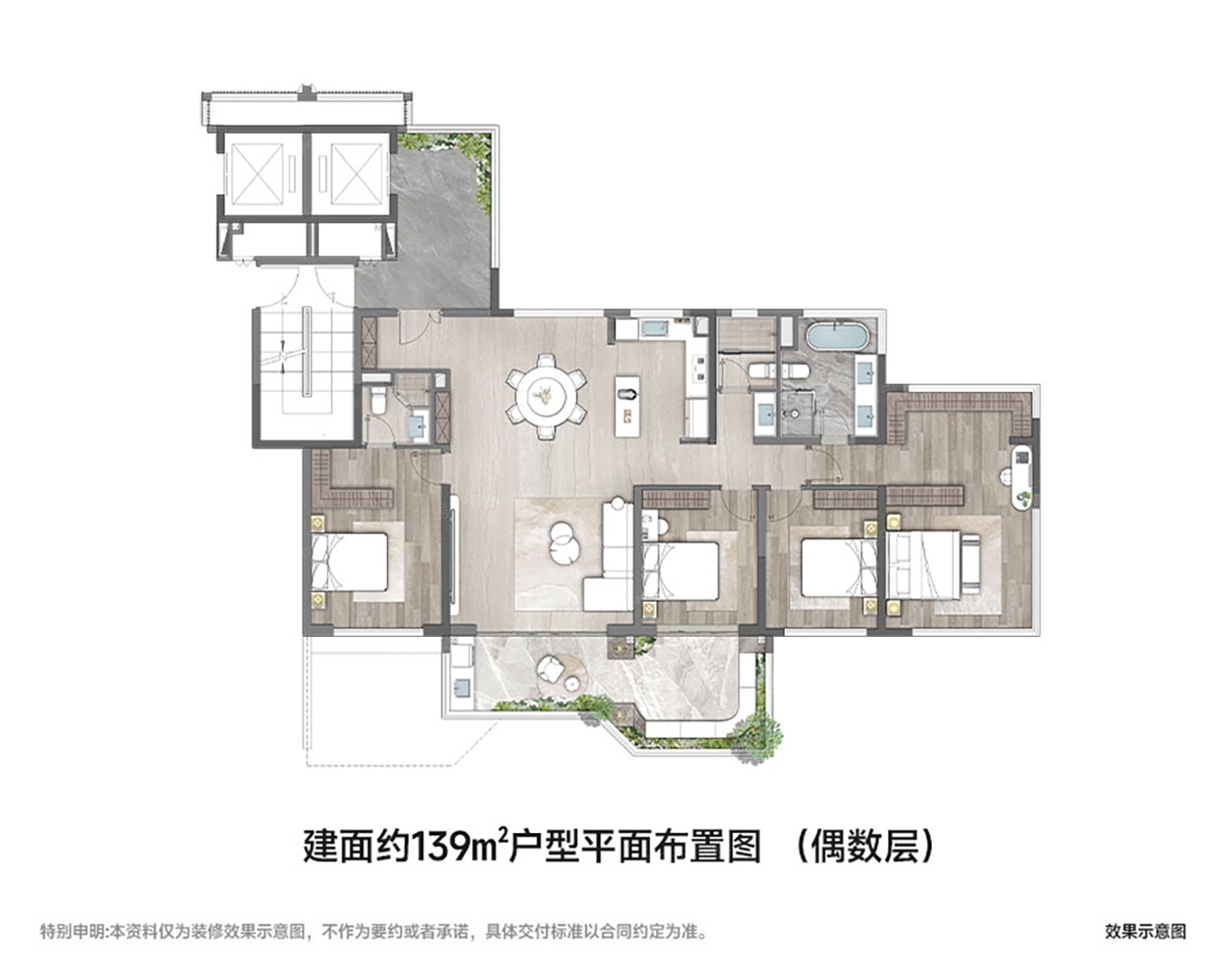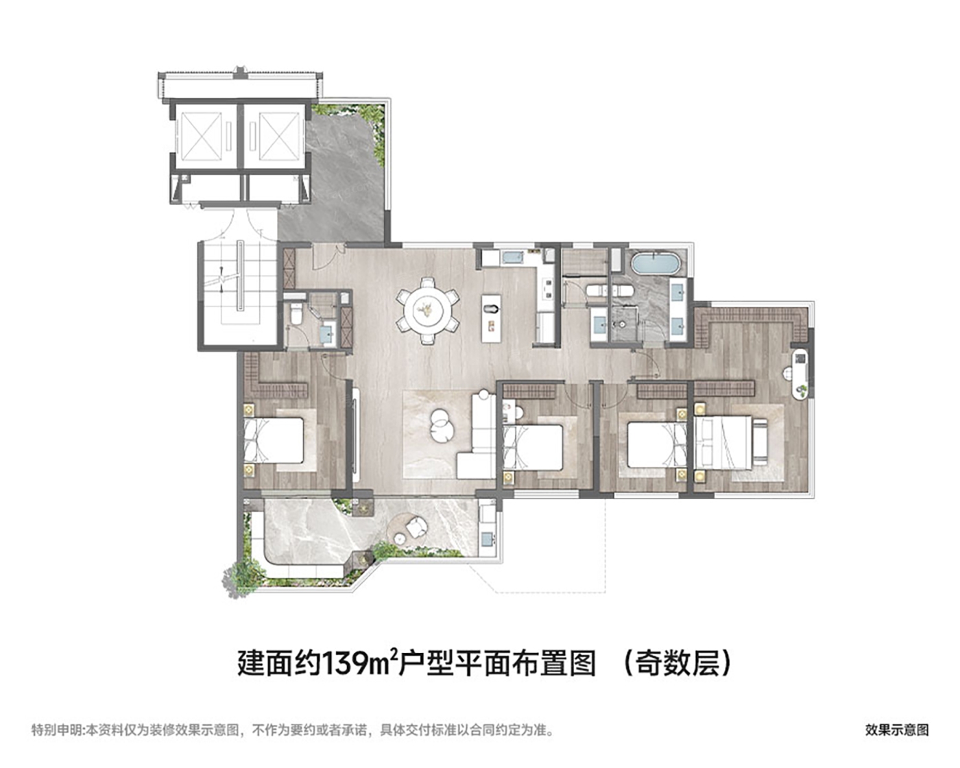 建华龙湖·香山颂 平层户型·建面/139㎡