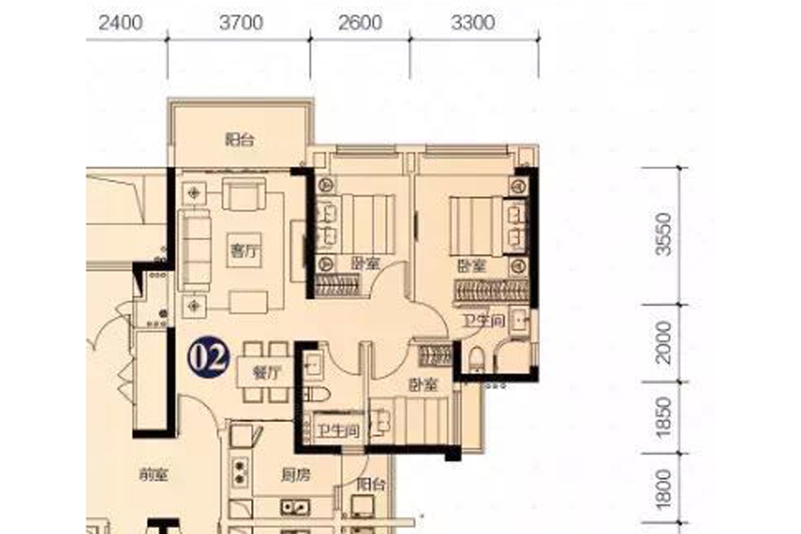 在售 户型方正动静分离采光充足主卧带卫大面宽阳台