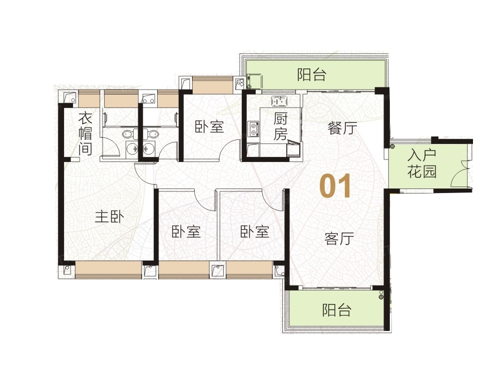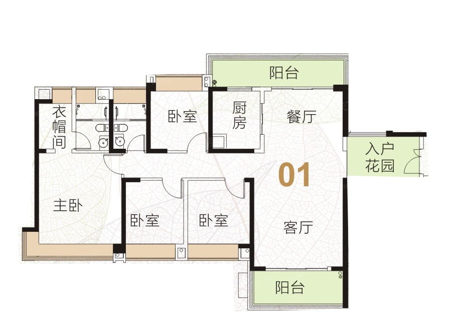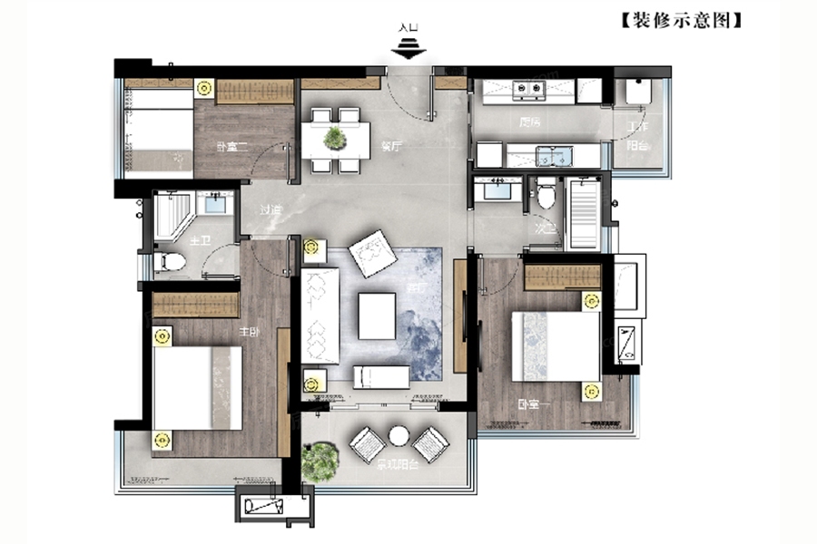 在售 户型方正动静分离采光充足主卧带卫大面宽阳台入户花园