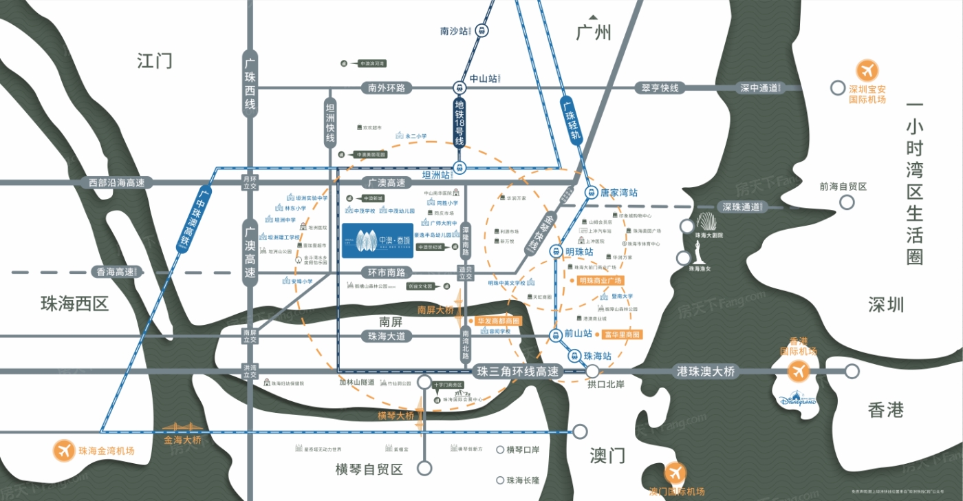 家里有老人,平时希望买菜逛街方便,看了下这边购物还挺方便的,买东西不愁,前山华润万家、坦洲壹加壹超市、同庆市场、坦洲市场,5 公里范围内环绕华发商都、富华里及明珠商业广场三大商圈。