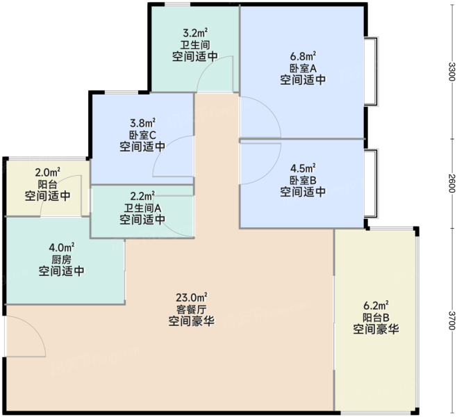 中山锦绣海湾城3室2厅2卫1厨91.00㎡户型图-白菜导航