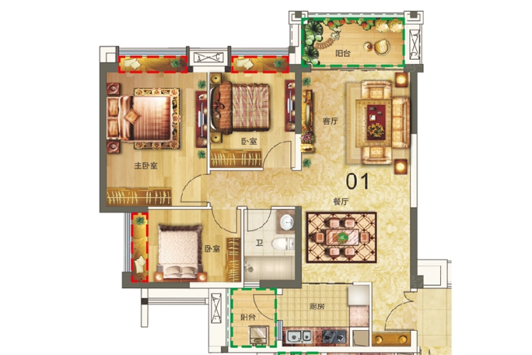 各个空间户型方正,后期空间利用率高;全明通透户型,居住舒适度较高,整个空间采...