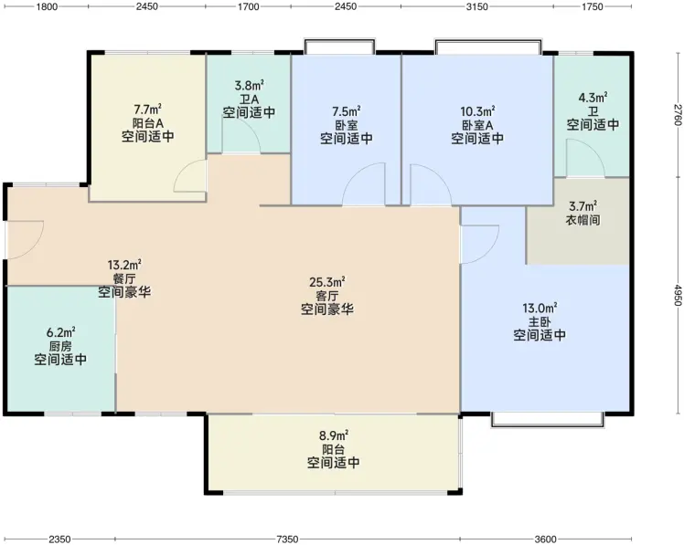 各个空间户型方正,方便室内家具布置;全明户型,各部分空间均有窗,可保证整体空...