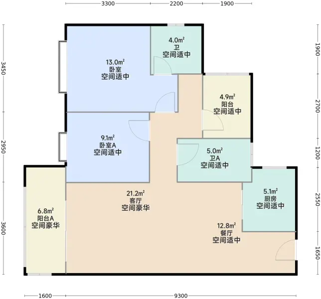 各个空间户型方正,方便室内家具布置;全明通透户型,居住舒适度较高,整个空间采...