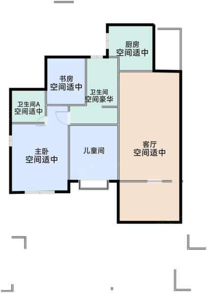 各个空间户型方正,后期空间利用率高;全明户型,各部分空间均有窗,可保证整体空...