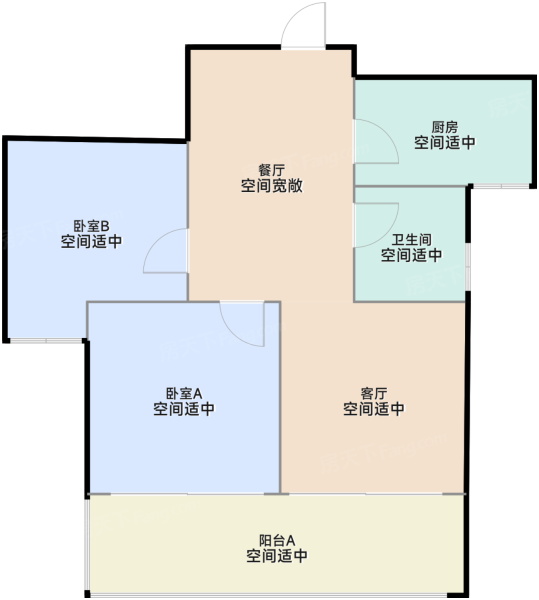 各个空间户型方正,方便室内家具布置;全明通透户型,居住舒适度较高,整个空间采...
