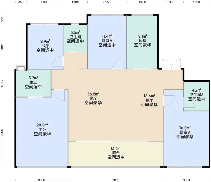 中山中山宝龙城3室2厅3卫1厨153.00㎡户型图-白菜导航