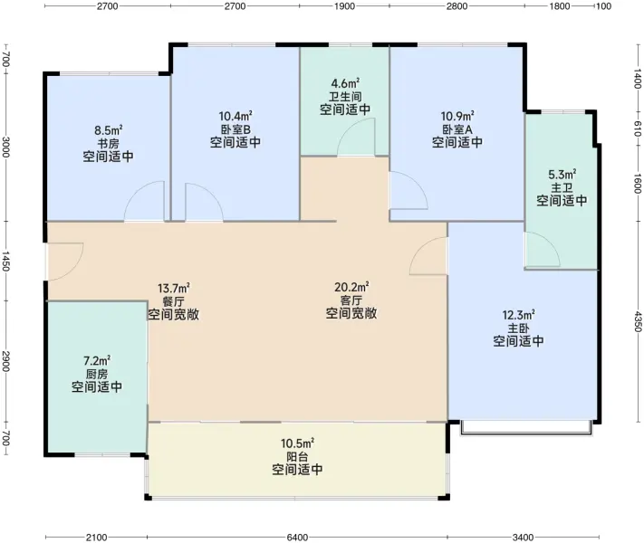 中山中山宝龙城4室2厅2卫1厨112.00㎡户型图-白菜导航