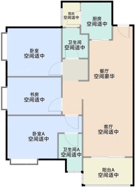 各个空间户型方正,后期空间利用率高;整个空间全明通透,采光良好,同时利于居住...