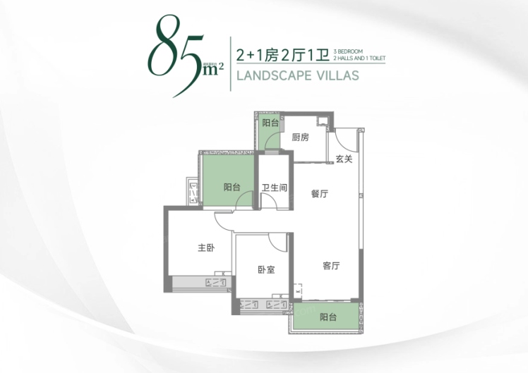85㎡2 1房2厅1卫