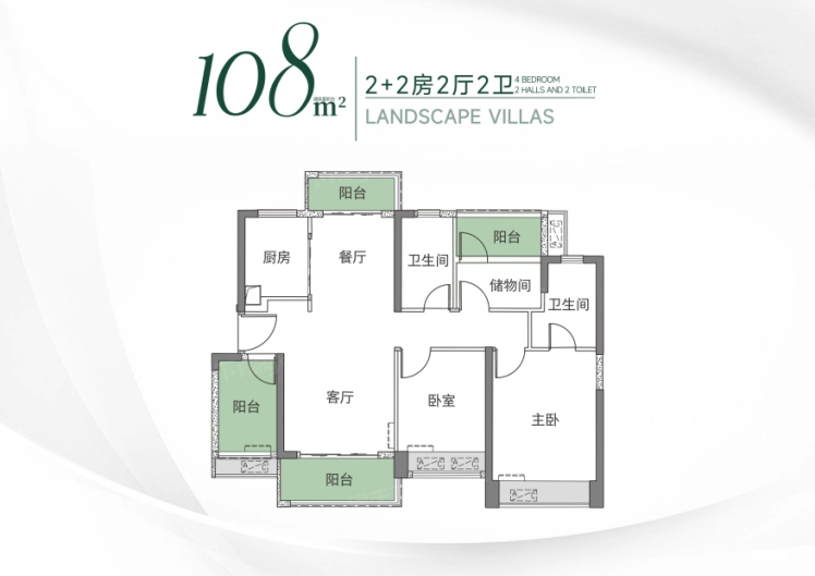 中山华发观山水4室2厅2卫1厨108.00㎡户型图-白菜导航