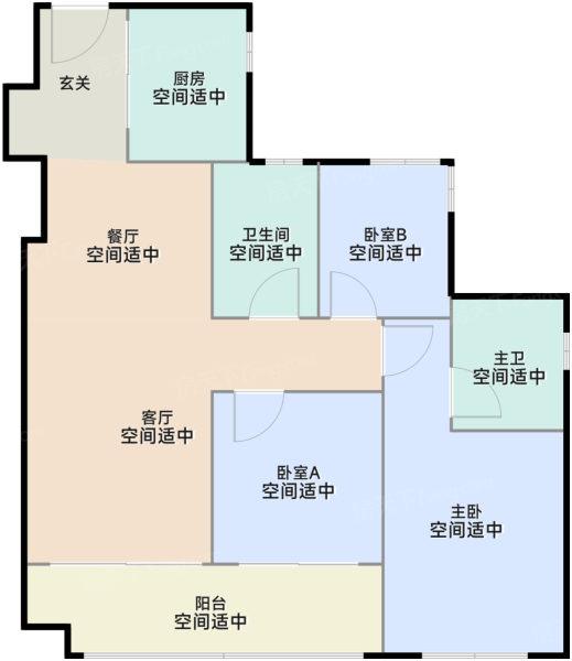 中山万科深业湾中新城3室2厅2卫1厨89.00㎡户型图-白菜导航
