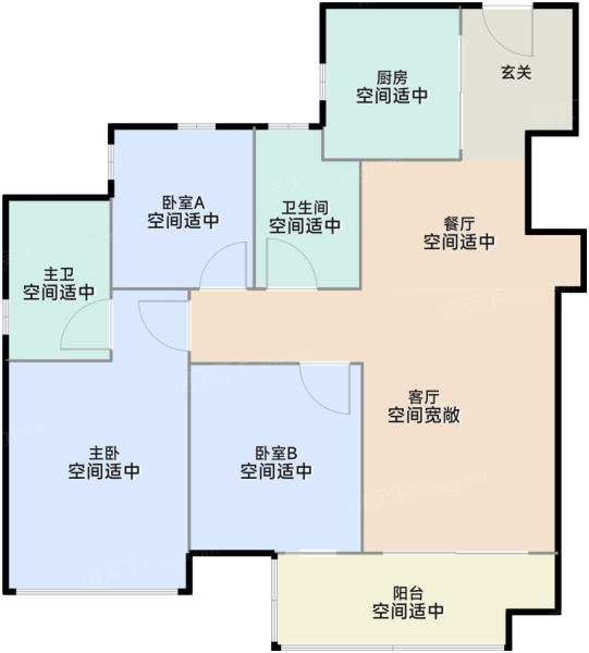中山万科深业湾中新城3室2厅2卫1厨89.00㎡户型图-白菜导航